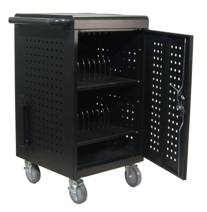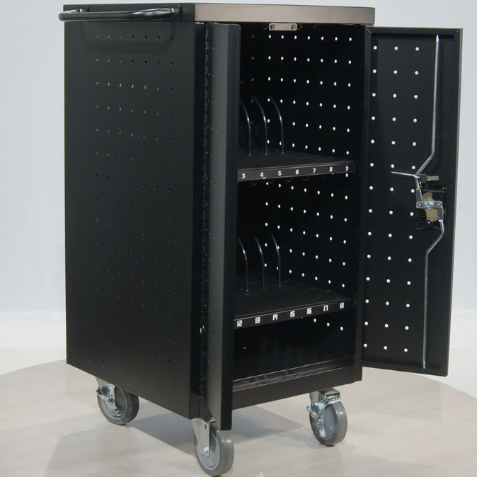 I detta smarta, laptopskåp som är utrustat med 10 st eluttag förvarar du laptop, mobiler, läsplattor, plånböcker etc.