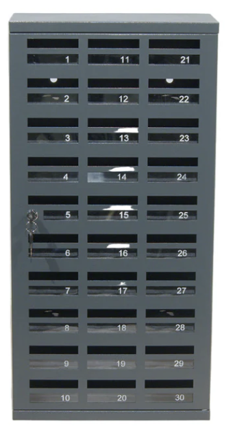 Här har du ett mobilförvaringsskåp som är både säkert och praktiskt. Skåpet är konstruerat och tillverkat så att man snabbt och enkelt deponerar sin mobil vilket gör att skåpet passar utmärkt på tex skolor där man har mobilförbud i klassrummen. Detta praktiska Mobilhotell passar även utmärkt på kontor för att tex skapa mobilfria zoner för att bidra till effektivare möten eller en lugnare arbetsmiljö. Man ser in i varje fack så att man kan kontrollera att mobilen är inlämnad och i vilket fack den förvaras. Varje fack är dessutom utrustat med fiskningsskydd samt en matta på golvet i varje fack för att minimera skaderisken. Dörren som ger tillgång till samtliga fack kan utrustas med nyckel- eller kodlås.